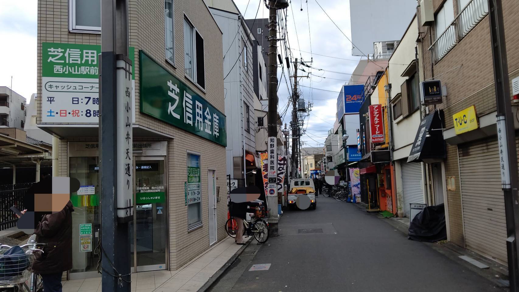 改札を出て右手前方、芝信用金庫ときん蔵屋という質屋のあいだの通りを直進します。